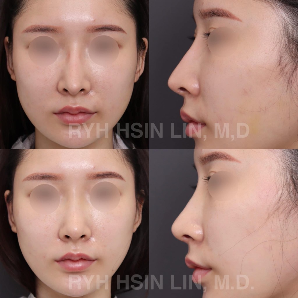 鼻重修手術後,改善了以上幾點,術後鼻型較自然柔和,也更適合案例的臉型。